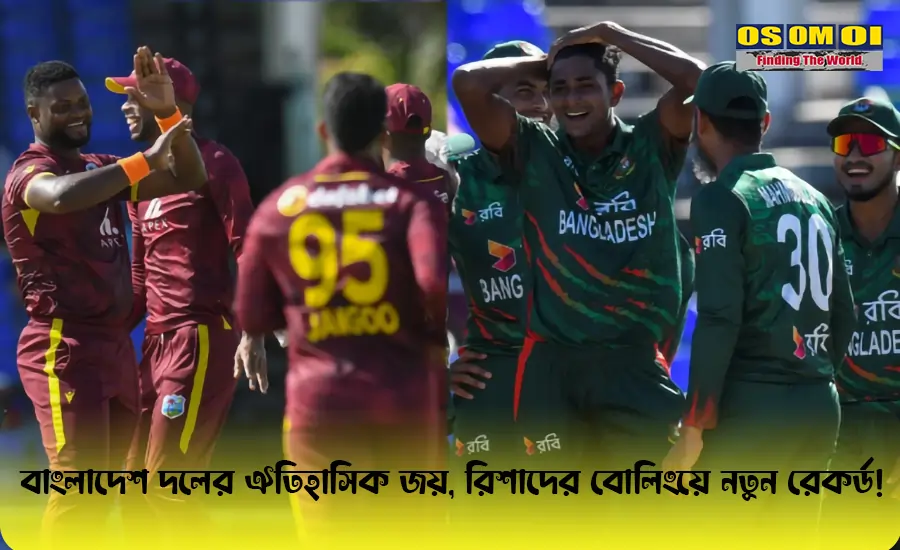 বাংলাদেশের ক্রিকেটে নতুন ইতিহাস!ওয়েস্ট ইন্ডিজের বিপক্ষে তিন ম্যাচের ওয়ানডে সিরিজে দারুণভাবে জিতে নিল বাংলাদেশ দল।প্রথম ম্যাচেই রিশাদ হোসেনের ৬ উইকেটে টাইগারদের দুর্দান্ত জয় এনে দেন ৭৪ রানে।